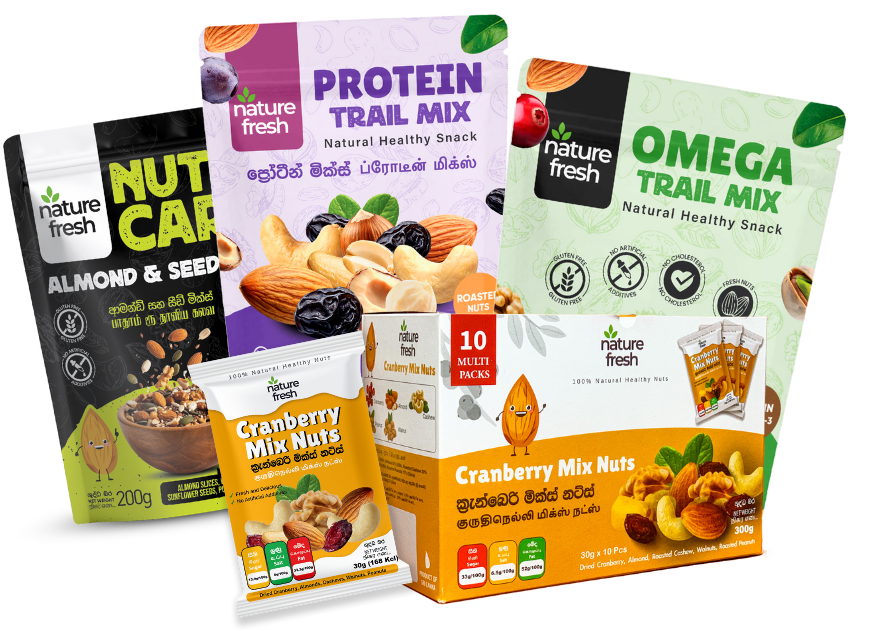 At NatureFresh, we pride ourselves on being Sri Lanka’s trusted Premium Nut Store, offering the finest selection of cashews, walnuts, almonds, pistachios, dry fruits, and seeds with a variety of flavored mixed nuts at affordable prices. Our products are carefully sourced to ensure top quality, freshness, and taste. With island-wide delivery, enjoying premium nuts has never been easier.